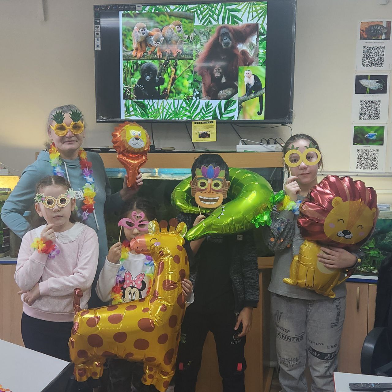 Сегодня гости МКУ ДО «СЮН» отметили необычный Новый год - тропический. Интересны его традиции: вместо ёлки – пальма, вместо саней – сёрфинг. Также ребята увлеченно раскрывали тайны тропического леса, знакомились с уникальными растениями и удивительными животными джунглей. Яркие надувные игрушки в виде животных тёплых стран сделали этот процесс особенно запоминающимся. Весело было трубить как слоны, да ещё и получить в подарок дудочку, при помощи которой имитировали звук. Обитатели живого уголка, казалось, с интересом наблюдали за мероприятием, особенно попугаи и красноухие черепахи. Ведь тропики – их историческая Родина, на которой они, «рожденные в неволе», никогда не были. В завершении дети угостили животных вкусняшками и сами получили небольшие сладкие призы. Надеемся, такой Новый год запомниться детям надолго!